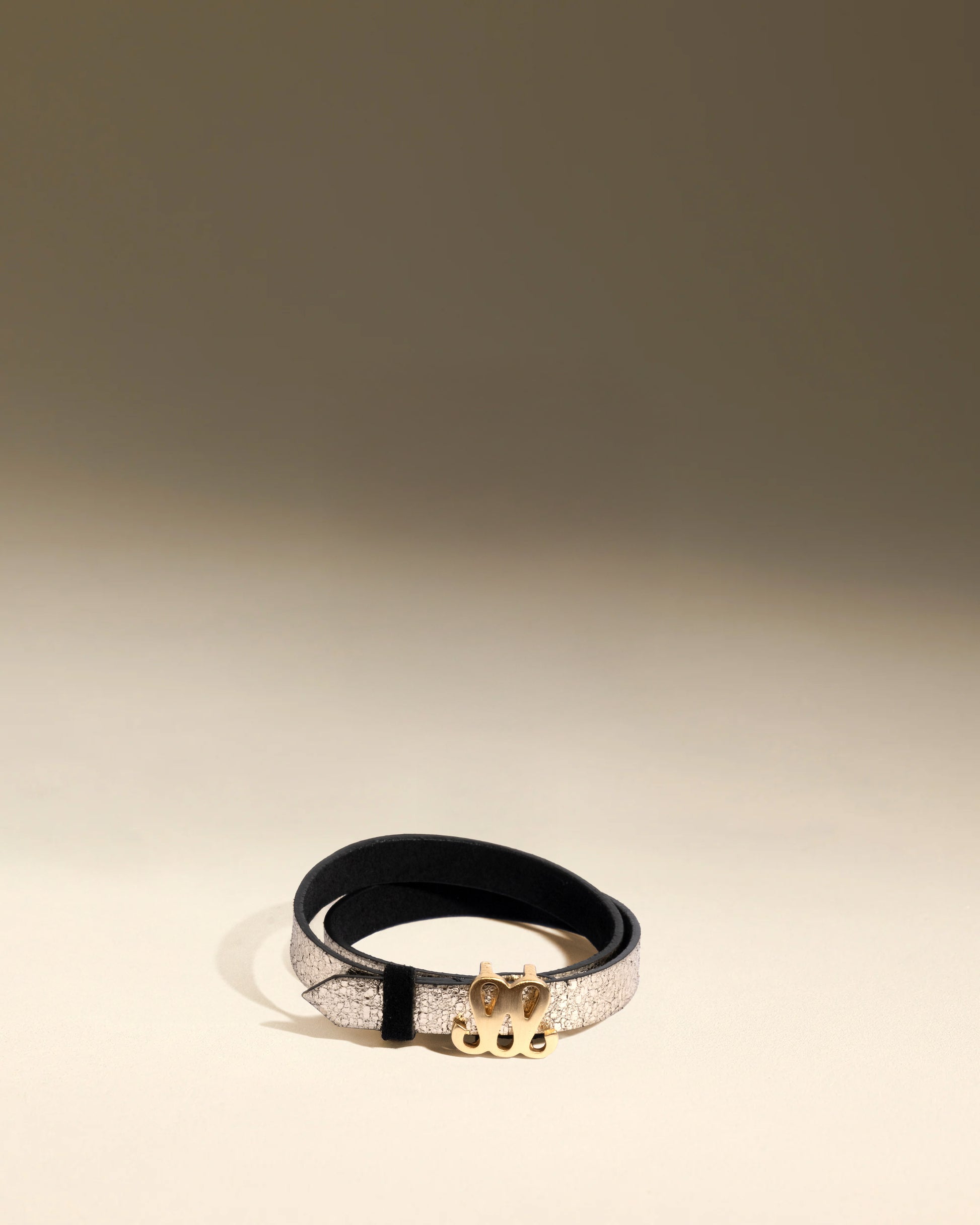The Monogram Bracelet adapts to all desires thanks to its reversible design: one side in black suede for a sober and timeless look, the other in gold leather for a bright and bold touch.