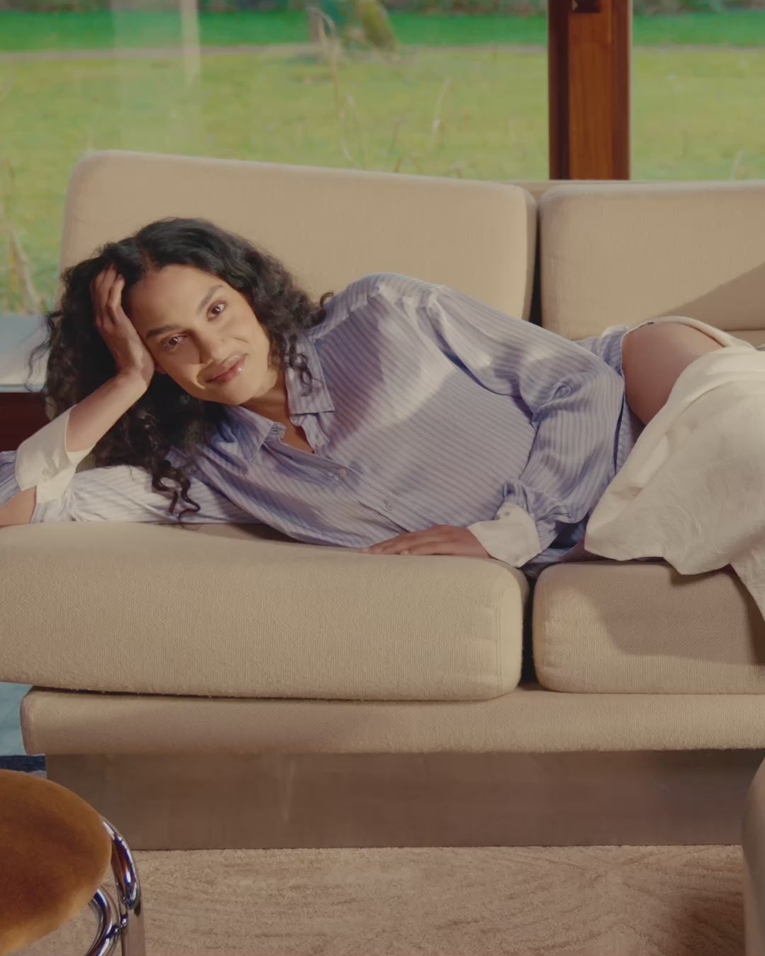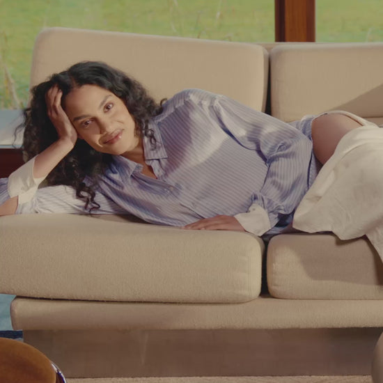 With its oversized fit, the Romy shirt flows gently around you, while fine stripes elongate and flatter your silhouette. A House monogram, embroidered on the cuff, completes this elegant piece.