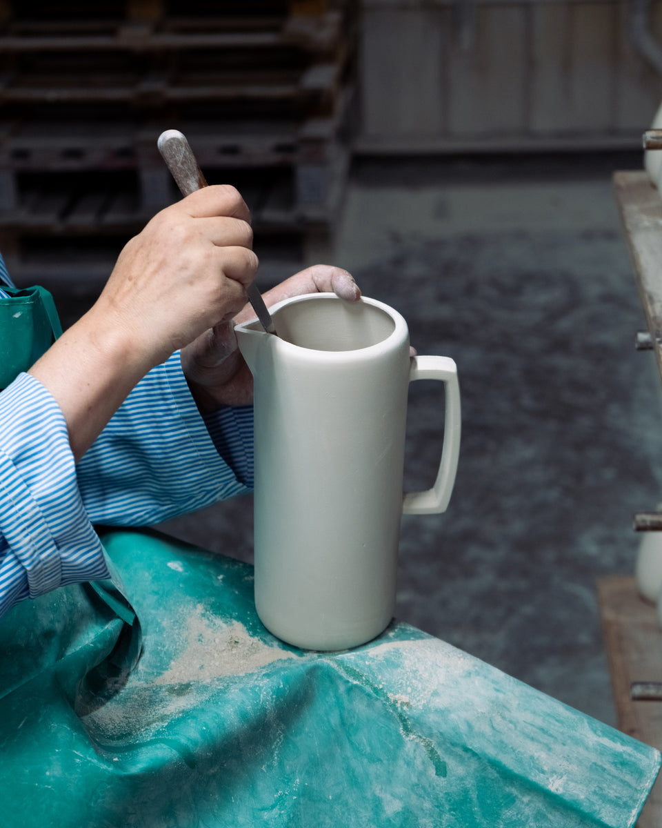 La céramique est une matière composée principalement d'argiles et de minerais naturels. Utilisée depuis des millénaires, elle se distingue par sa résistance, sa versatilité et la liberté créative qu'elle offre. Selon sa composition et sa cuisson, elle se décline en plusieurs familles : la faïence, poreuse et délicatement émaillée ; le grès, dense et résistant ; la porcelaine, fine et translucide.