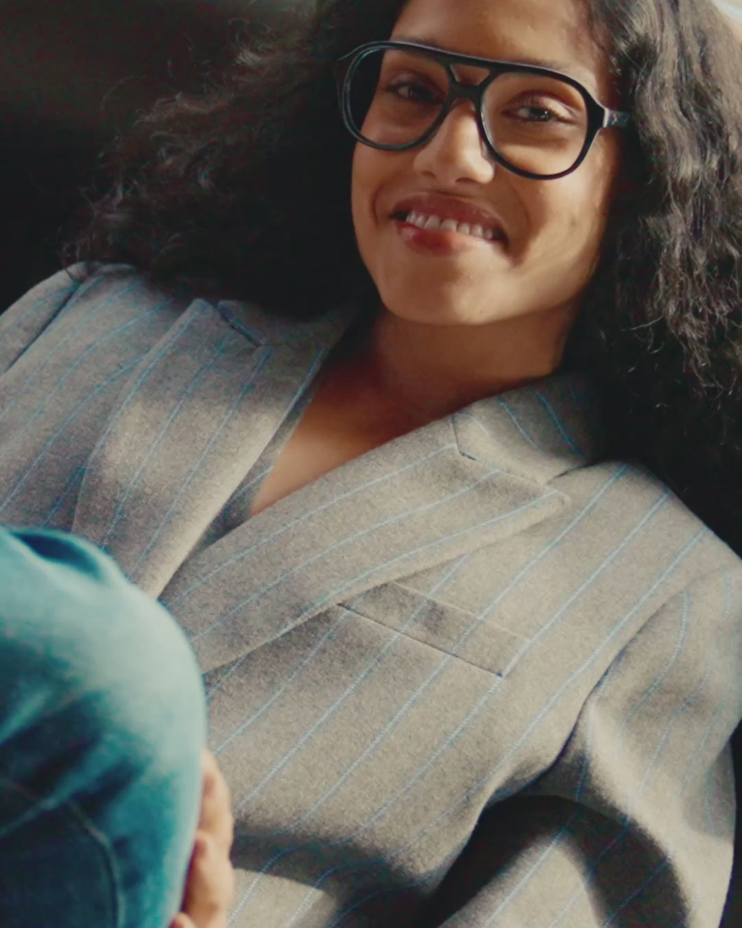 Specific features: suit jacket, notched collar, straight cut slightly oversized, chest pocket with flap, center back vent, buttoned cuffs