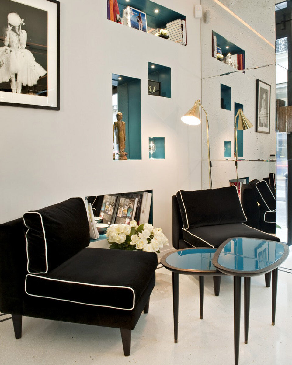 L’enjeu était d’imaginer comment sublimer les collections de joaillerie de Marie, dans un tout petit espace (15m2), rue des Saint-Père à Paris.