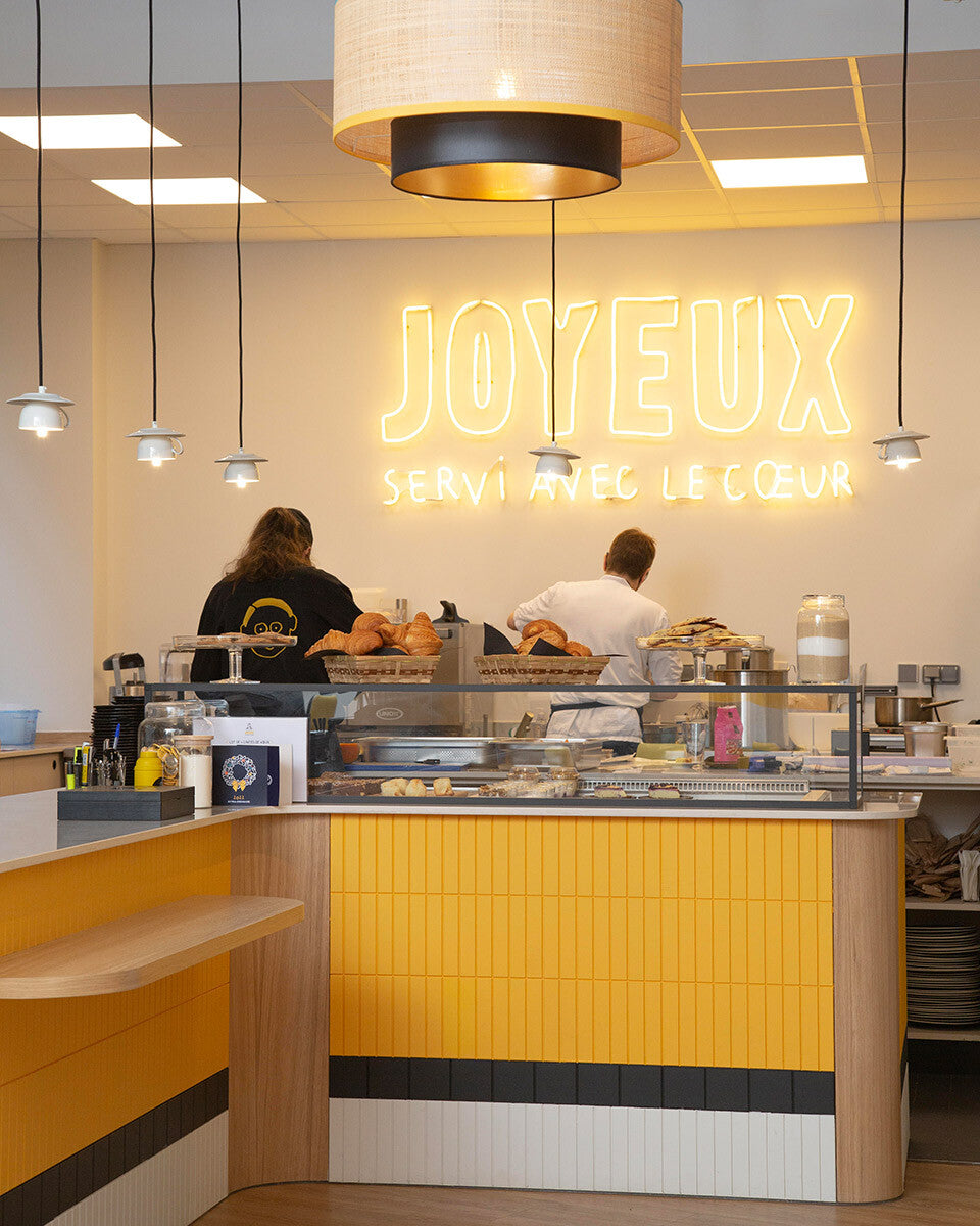 C’est un nouveau projet que le Studio d’Architecture se voit attribué d’une mission double au nouveau café éphémère de la Madeleine : Mettre l’humain au cœur d’un environnement de travail toujours plus agréable et sécurisé pour les équipiers « Joyeux », tout en créant des espaces intemporels et chaleureux pour le public.