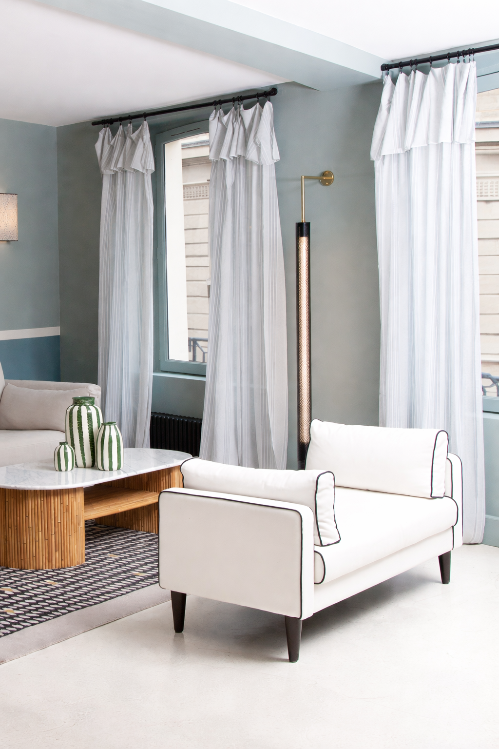 Prix hors tissu - revêtement à choisir parmi la gamme de tissus Maison Sarah Lavoine. Contactez le Service Client pour choisir la couleur et votre tissu :