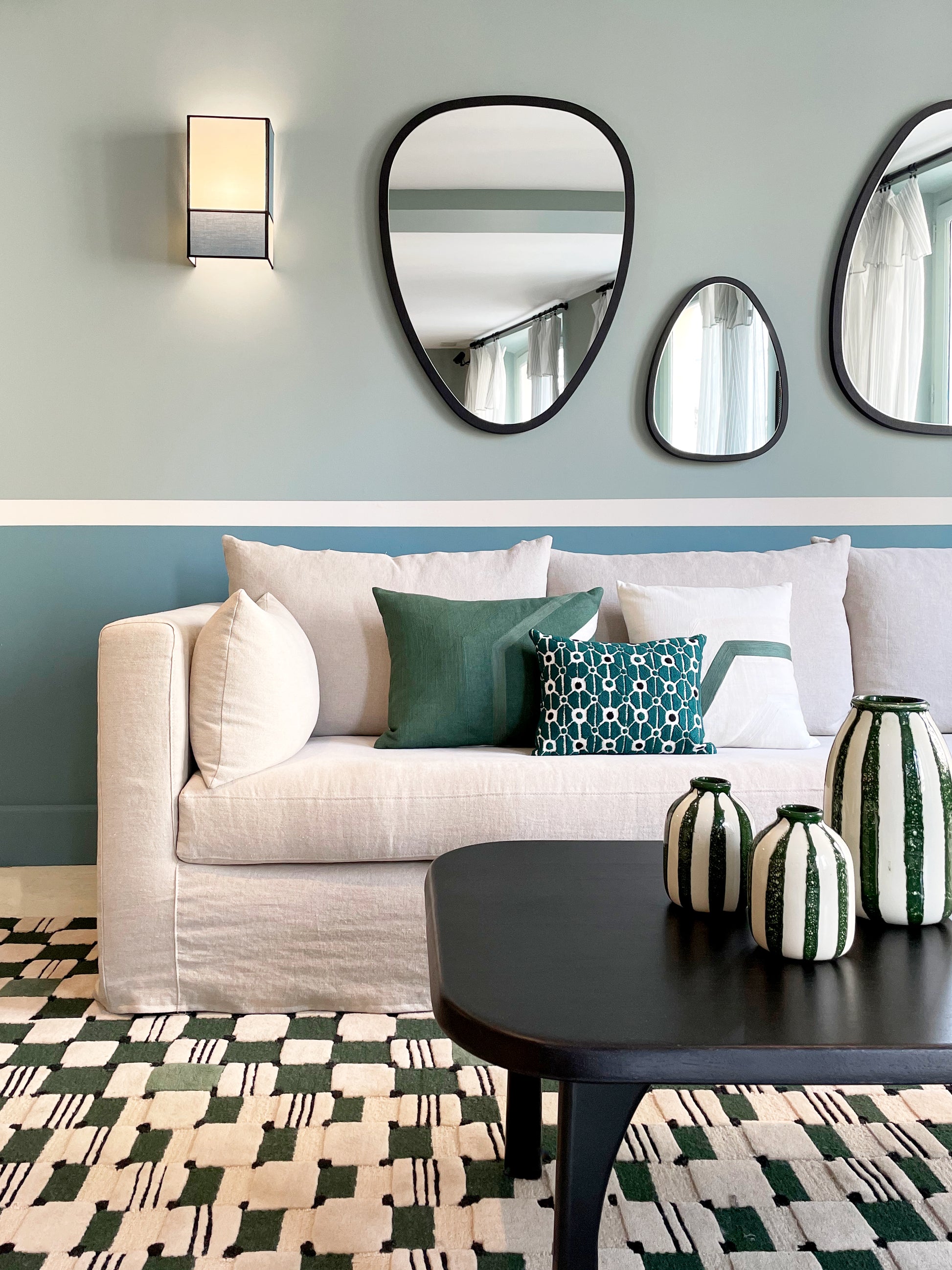 Avec ses hauts accoudoirs enveloppants et sa profondeur d’assise, le canapé Box invite à se blottir dans ses nombreux coussins. Rehaussé d’un passepoil, il arbore un style simple et raffiné.