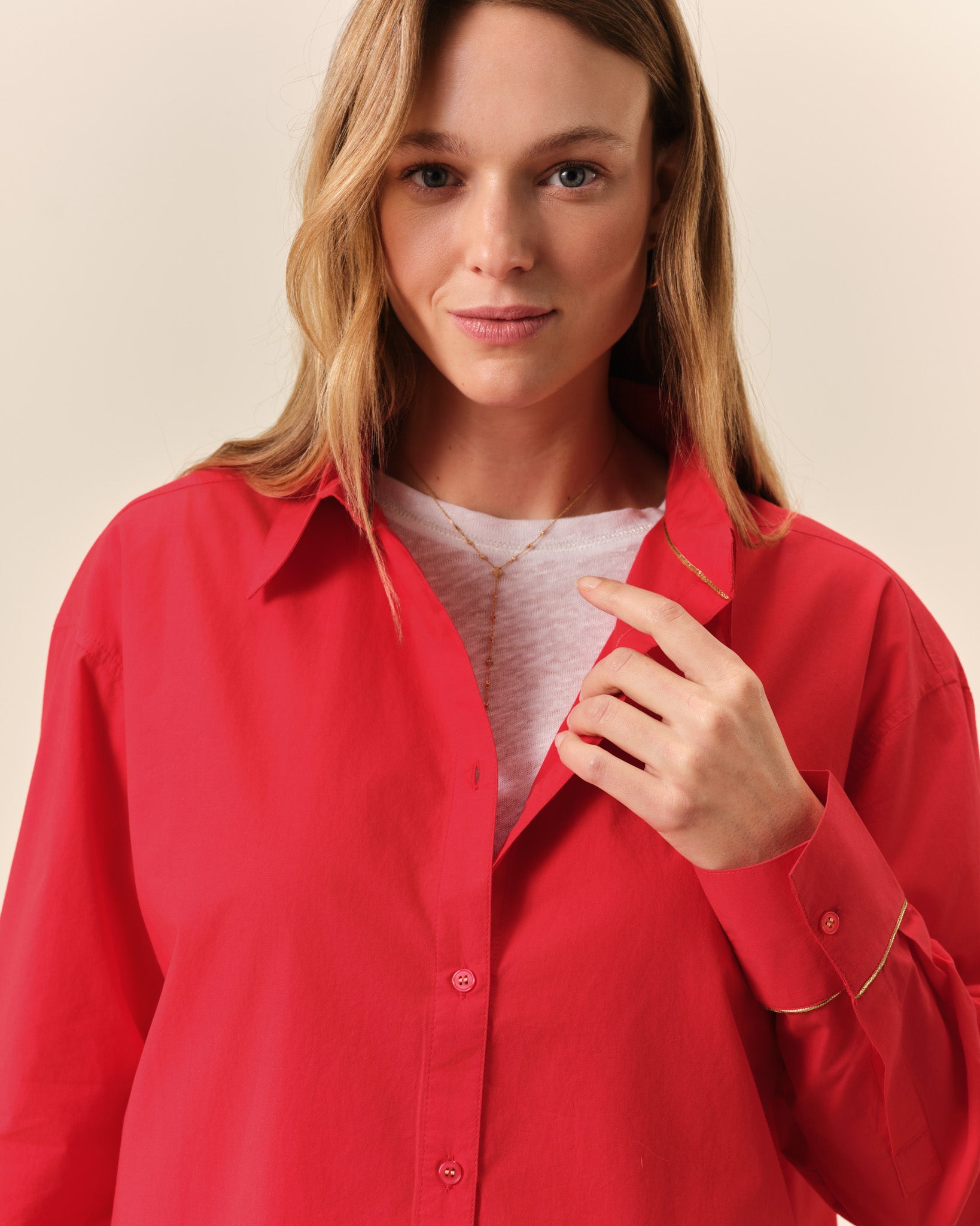 Chemise coupe oversize, manches longues et col de chemise classique