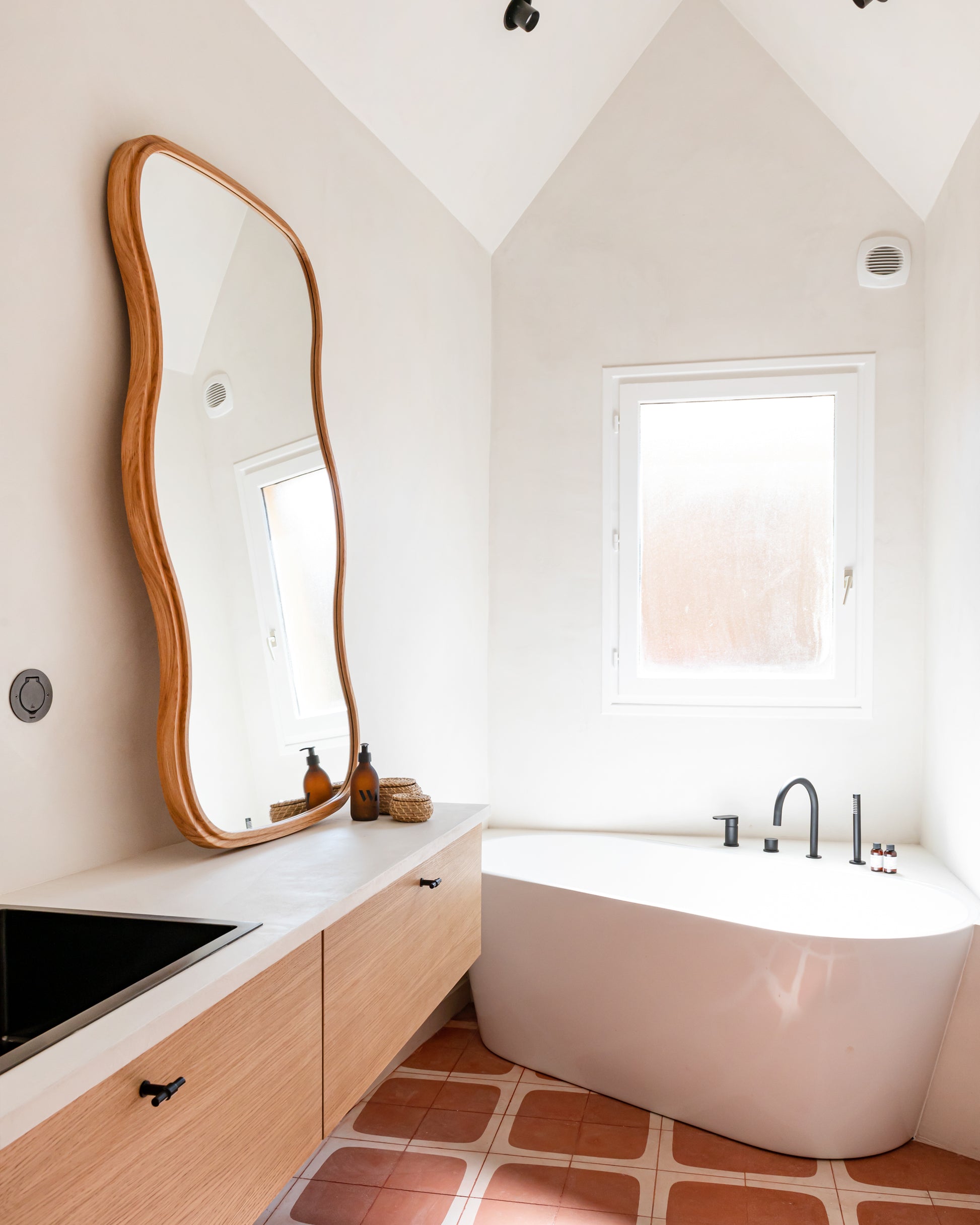 Imaginé pour l'hôtel Café de Paris, à Biarritz, le miroir Noto a l’étoffe d'une grande pièce et a été créé par le studio d’architecture de Maison Sarah Lavoine.