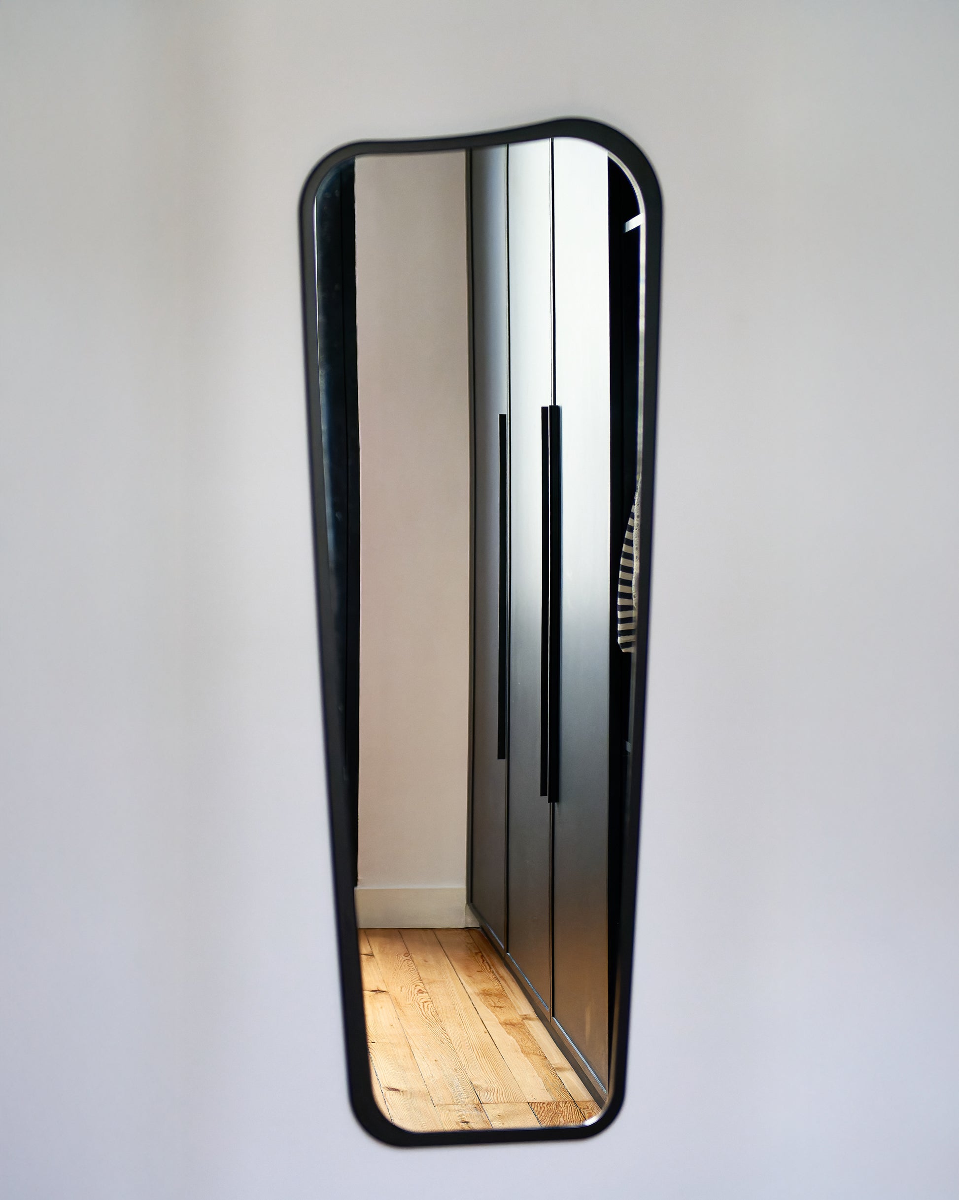 Le miroir Organique s’accroche au mur pour agrandir une pièce, éclairer un coin sombre ou tout simplement renvoyer une nouvelle image de soi. Imaginé en trois formats, il trouve sa place partout.